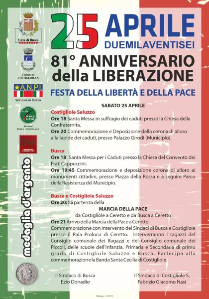 I Comuni di Busca e Costigliole Saluzzo si preparano a celebrare la ricorrenza dell’80° anniversario della Liberazione e coinvolgere cittadini e scuole nella riflessione sui valori della Libertà, della Democrazia e della Pace.