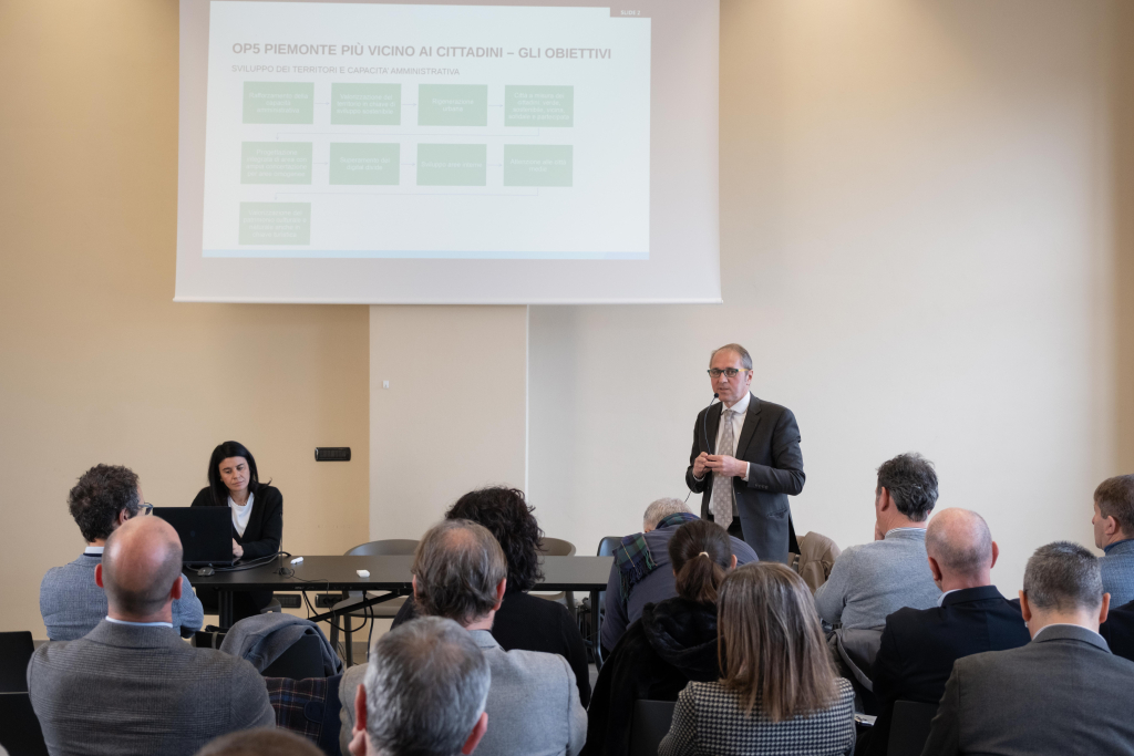 Il funzionario responsabile del settore Programmazione e sviluppo territoriale, Mario Gobello, ha introdotto il primo intervento, affidato a Giuliana Fenu, direttore della Direzione Competitività del Sistema Regionale, e alla professoressa Chiara Civera dell’Università di Torino, capofila del progetto. La mattinata è proseguita con un aggiornamento sullo stato di avanzamento dei lavori e con la presentazione dei progetti dei Comuni di Alba, Bra, Mondovì e Saluzzo, che hanno illustrato le migliori pratiche sviluppate nei rispettivi territori. All’incontro hanno partecipato i sindaci, amministratori e tecnici dei comuni coinvolti nel progetto.