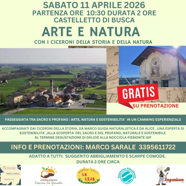 Sabato 11 aprile 2026, con partenza alle ore 10:30, a Castelletto di Busca è in programma “Arte e Natura”, una passeggiata tra sacro e profano all’insegna di arte, ambiente e sostenibilità.