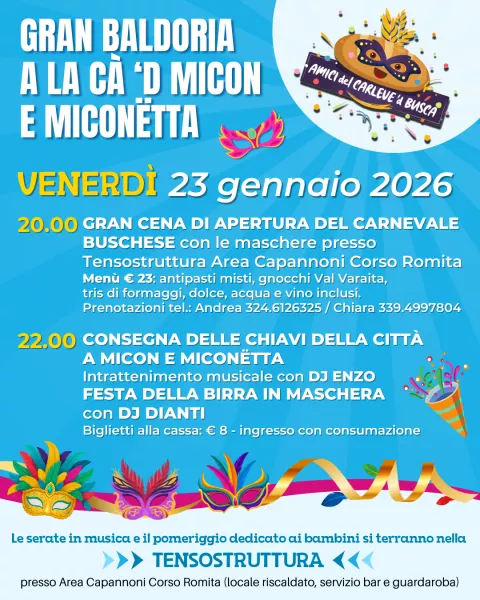 Gran cena di apertura del Carnevale Buschese con le Maschere