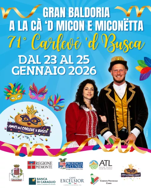Mancano pochi giorni all’attesissimo Carlevè 'd Busca che, come da tradizione, con la sua sfilata dei carri, è la prima della provincia di Cuneo. Saranno tre giorni di iniziative e divertimento, proposti dal gruppo dei volontari “Amici del Carlevè ‘d Busca”, che in collaborazione con il Circolo Endas Cuneo Centro e con il patrocinio del Comune di Busca, stanno ultimando i preparativi. Il ricco programma prenderà il via venerdì 23 gennaio con la serata di apertura e l’investitura delle maschere, proseguirà sabato con iniziative dedicate ai più piccoli e culminerà domenica 25 gennaio con la grande parata dei carri allegorici. Nella stessa giornata, arriverà inoltre a Busca un treno speciale da Torino con oltre 150 passeggeri, che visiteranno i principali luoghi artistici della città e la mostra “SBAM! Un percorso nella Pop Art”, ospitata a Casa Francotto.