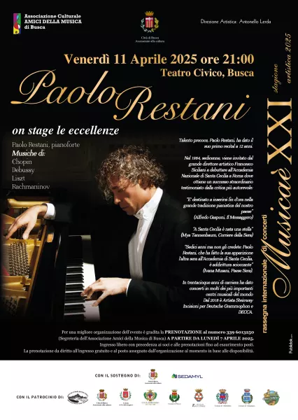 Venerdì 11 aprile alle ore 21 presso al Teatro Civico di Busca si esibirà il celebre pianista Paolo Restani.