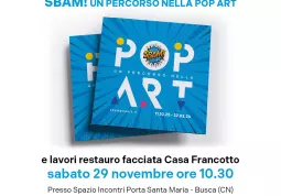Sabato 29 novembre alle ore 10.30 presso lo Spazio Incontri Santa Maria verrà presentato il catalogo curato e redatto in occasione della mostra “SBAM! Un percorso nella Pop Art” si snoda tra le sale di Casa Francotto a Busca e gli spazi di Palazzo Salmatoris e della chiesa di San Gregorio a Cherasco, con quasi 200 opere che raccontano un viaggio vibrante attraverso uno dei movimenti più rivoluzionari del XX secolo.