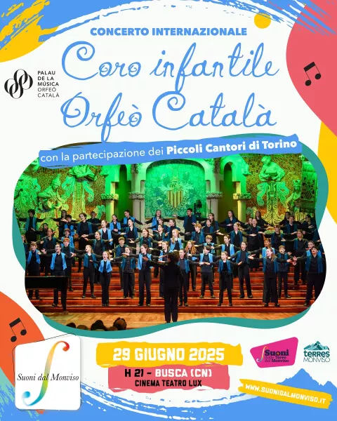 Domenica 29 Giugno ore 21.00 al Cinema Teatro Lux di Busca, si esibiranno due tra i cori di voci bianche più prestigiosi a livello europeo: l’Escola Coral de l’Orfò Català di Barcellona e i Piccoli Cantori di Torino. I due cori si alterneranno sul palco con brani da ogni angolo del pianeta: dalla Catalogna all’Africa, dall’Italia a Singapore, passando per l’opera lirica e il musical.