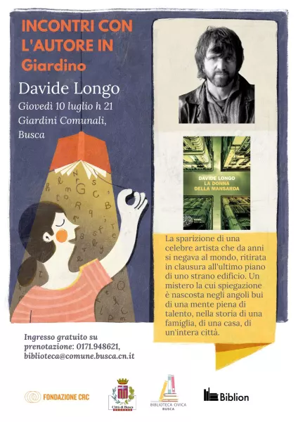 Giovedì 10 luglio ore 21, nel Giardino del Municipio, torna a Busca per la terza volta Davide Longo con il suo nuovo romanzo "La donna nella mansarda", pubblicato da Einaudi nella collana Einaudi.