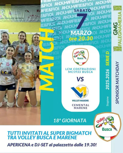 Ad anticipare il super bigmatch tra Volley Busca e Marene, aperitivo e dj-set al Palazzetto a partire dalle ore 19.30.