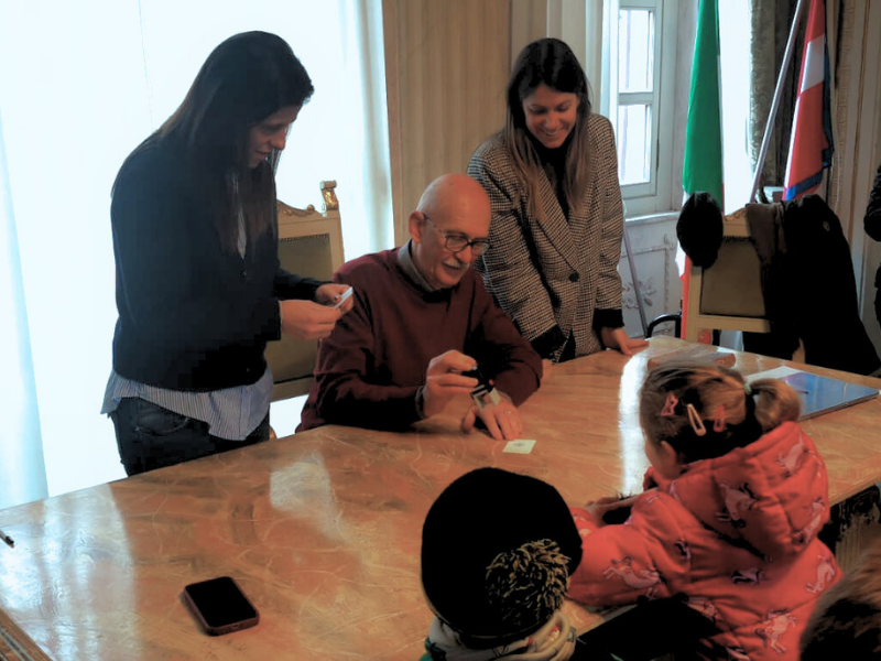 A conclusione della visita, il Sindaco ha firmato e timbrato simbolicamente le “carte d’identità” realizzate dai bambini in classe, rendendo l’esperienza ancora più speciale e partecipata.