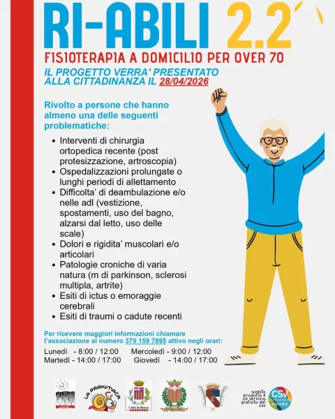 “RI-ABILI 2.2”, iniziativa promossa dall’associazione con il patrocinio dei comuni di Busca e Tarantasca, l’associazione La Parkimaca e sostenuta dal CSV, è pensato principalmente per coloro che presentano almeno una delle seguenti patologie: