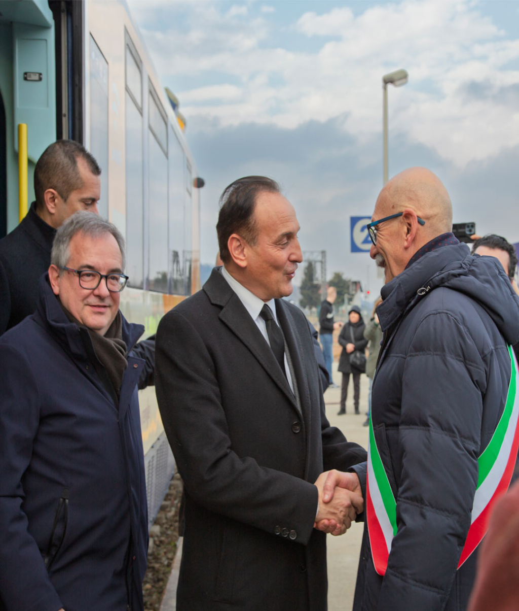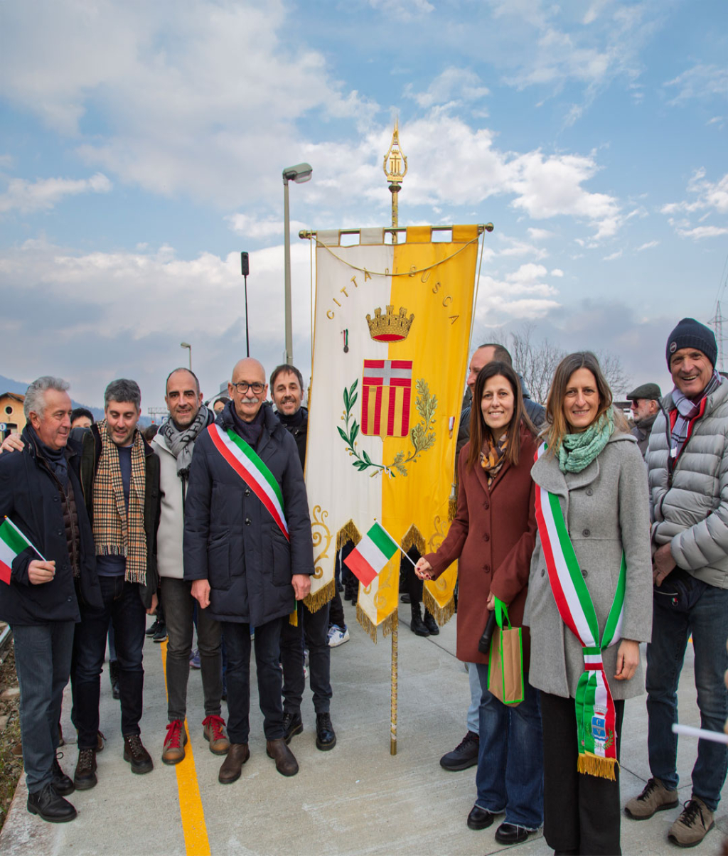 Tra i presenti, il presidente della Regione Piemonte, Alberto Cirio, il presidente della Provincia, Luca Robaldo, il sen. Giorgio Bergesio, l'On. Monica Ciaburro, l’assessore regionale ai Trasporti, Marco Gabusi, l’assessore alla Montagna, Marco Gallo, la sindaca di Cuneo, Patrizia Manassero, insieme ai vertici di Arenaways e Valentina Bono, sindaca di Vottignasco, che è salita a bordo del treno con il sindaco di Busca, Ezio Donadio.