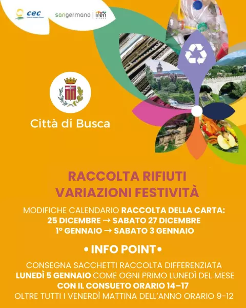 - la raccolta della carta prevista per giovedì 1° gennaio sarà effettuata sabato 3 gennaio.