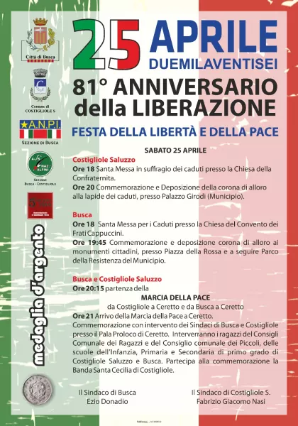 I Comuni di Busca e Costigliole Saluzzo si preparano a celebrare la ricorrenza dell’81° anniversario della Liberazione e coinvolgere cittadini e scuole nella riflessione sui valori della Libertà, della Democrazia e della Pace.