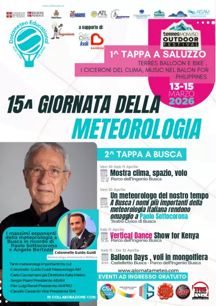 Da venerdì 10 a domenica 12 aprile, Busca ospita la 15ª Giornata della Meteorologia, un ricco programma di iniziative dedicate al clima, alla scienza e alla divulgazione, quest’anno ispirato al tema “Busca vola ed innova il clima a km zero”.