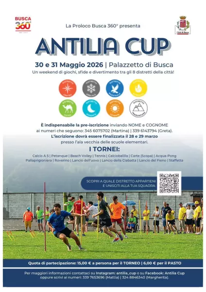 Per ulteriori informazioni è possibile consultare le pagine social della Proloco Busca 360°: Instagram (@antilia_cup) e Facebook (Antilia Cup) oppure contattare i numeri 339 7653696 (Mattia) e 324 8846340 (Margherita).