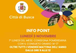 Lunedì 3 novembre, come ogni primo lunedì del mese, l’Info Point al piano terra del Palazzo Comunale sarà aperto dalle 14 alle 17 per la consegna pomeridiana dei sacchetti per la raccolta differenziata. L’apertura dello sportello integra il consueto orario del venerdì mattina, attivo dalle 9 alle 12.