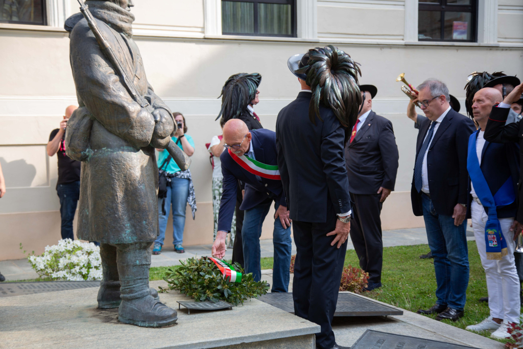A seguire, la sfilata ha attraversato le vie cittadine fino a raggiungere piazza della Rossa, accolta da una folla festante, dove è stato reso omaggio alla lapide con i nomi dei 206 buschesi caduti nella Prima Guerra Mondiale, tra cui il bersagliere Simone Sordello.