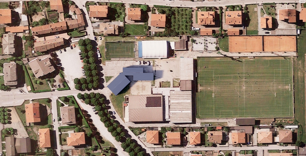 Sui fronti più esposti, inoltre, è presente un rivestimento in lamiera con frangisole a ginocchio. Sulle coperture della scuola e della palestra è installato un grosso impianto fotovoltaico, in linea con la filosofia sostenibile alla base dell’intero progetto.