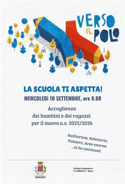 Mercoledì 10 settembre, alle ore 8.00 all’ingresso del nuovo Polo scolastico, si terrà la cerimonia di avvio dell’anno scolastico per gli alunni della scuola primaria di primo grado dell’Istituto Comprensivo “Giosuè Carducci” di Busca. Le lezioni per la scuola secondaria di primo grado inizieranno invece già martedì 9 settembre.