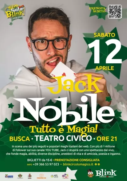 Sabato 12 aprile, il Teatro Civico di Busca si trasformerà in un luogo di pura meraviglia con Jack Nobile, uno dei prestigiatori più amati d’Italia, protagonista della X rassegna Sim Sala Blink. Con oltre 1,5 milioni di follower su YouTube, Jack porterà in scena il suo spettacolo "Tutto è magia", un viaggio emozionante attraverso illusioni sorprendenti, racconti personali e tecniche raffinate.