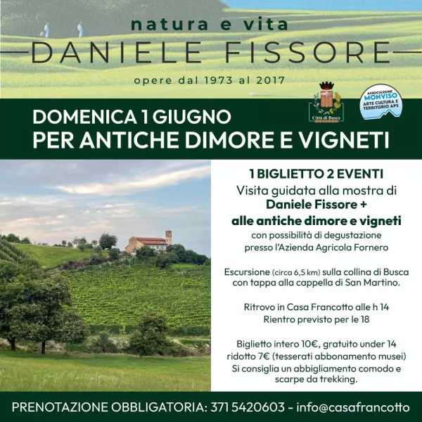 Il biglietto comprende anche la visita guidata alla mostra “natura e vita - Daniele Fissore, opere dal 1973 al 2017” che verrà effettuata prima dell’inizio della passeggiata