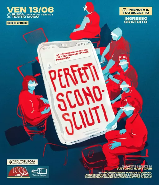 Venerdì 13 giugno alle ore 21 presso il Teatro Civico di Busca la compagnia teatrale TIB - Teatro In Bottiglia porta in scena "Perfetti sconosciuti", tratto dall'omonimo pluripremiato film di Paolo Genovese.