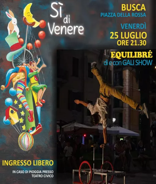 Venerdì 25 luglio alle ore 21.30 in Piazza della Rossa la compagnia di Santibriganti Teatro porta in scena "Equilibré" di e con Gali Show.
