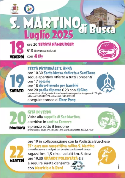Dal 18 al 22 luglio in frazione San Martino di Busca quattro giorni di festa con tanti momenti conviviali, visite guidate e musica dal vivo organizzati dal comitato frazionale.