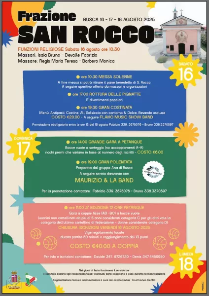 Da sabato 16 a lunedì 18 agosto in frazione San Rocco di Busca si svolgerà la festa patronale organizzata dai volontari del comitato.