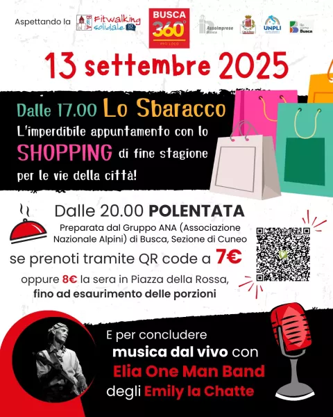 Come da tradizione, la Fitwalking Solidale di Busca è anticipata anticipata la settimana precedente con un appuntamento speciale: sabato 13 settembre il centro di Busca ospiterà la serata “Aspettando la Fitwalking”, curata dalla Pro Loco Busca 360°, un evento che unisce gioco, gusto e musica.