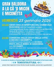 Venerdì 23 gennaio con la Gran Cena di apertura durante la quale avverrà la consegna delle chiavi della città a Micon e Miconëtta, seguita dalla festa in maschera.