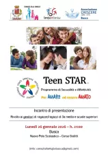 Sarà presentato lunedì 26 gennaio, alle ore 21.00 presso l’Auditorium del Polo scolastico di Busca, il nuovo corso Teen Star, un percorso di educazione all’affettività e alla sessualità, rivolto ai ragazzi/e di 3^ media e scuole superiori.