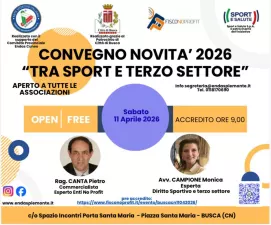 Sabato 11 aprile 2026, si terrà a Busca un importante appuntamento dedicato al mondo dell’associazionismo e dello sport dilettantistico: il convegno “Tra Sport e Terzo Settore”, un’iniziativa gratuita e aperta a tutte le associazioni del territorio.