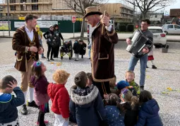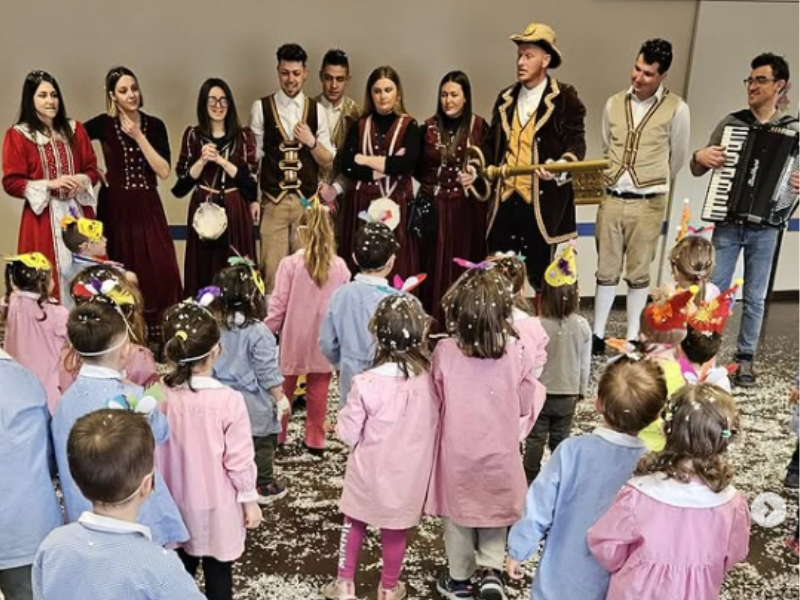 Sempre accompagnata dalla fisarmonica di Maurizio Chialva, la “baldoria” è poi proseguita nelle scuole cittadine.
