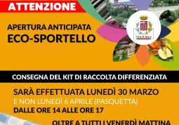 Presso l’Infopoint è possibile ritirare il materiale per la raccolta differenziata porta a porta (sacchetti e mastelli). Per il ritiro è necessario presentarsi muniti di copia dell’ultima bolletta della tassa rifiuti ricevuta, oppure codice fiscale (tessera sanitaria) dell’intestatario TARI o delega firmata dal titolare dell’utenza.