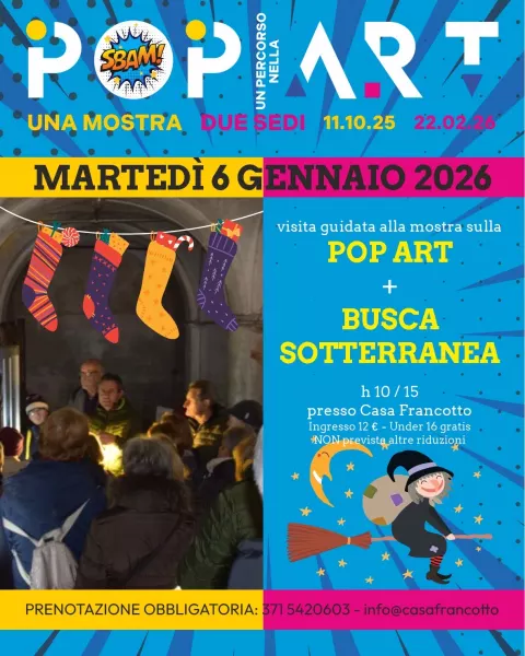 Martedì 6 gennaio 2026 oltre alla visita guidata alla mostra SBAM! verrà riproposta la visita a Busca Sotterranea, un giro piuttosto curioso alla scoperta dei luoghi underground della città.
