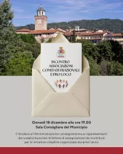Giovedì 18 dicembre alle ore 19.00 presso la Sala Consigliare del Municipio, consegna delle lettere di assegnazione dei contributi per le iniziative cittadine organizzate durante l'anno ai rappresentanti dei sodalizi buschesi.